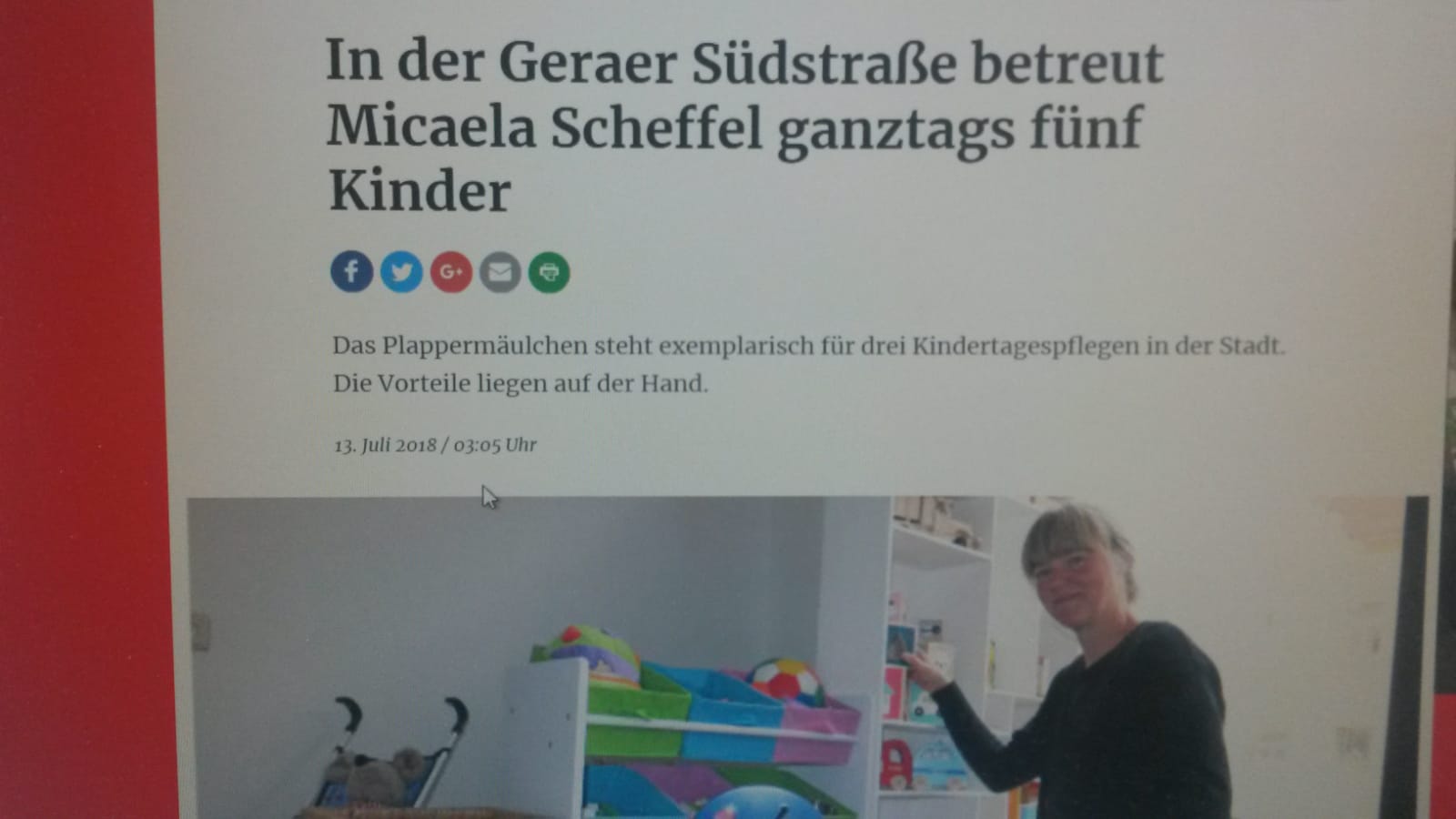 Wenn Sie für Ihr Kind eine Kindertagespflegestelle in Gera suchen (viele kennen das noch unter dem Begriff „Tagesmutter“), dann sollten Sie über eine Betreuung in der Kindertagespflege „Geras Plappermäulchen“ nachdenken.